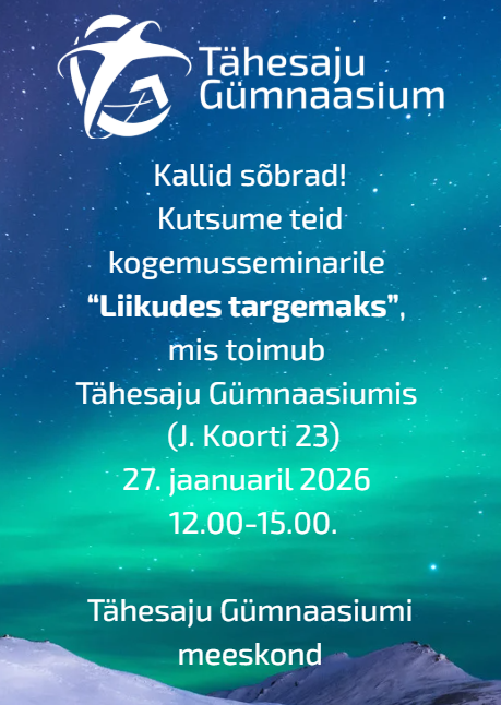Tähesaju Gümnaasium kutsub koolide ja lasteaedade õpetajaid osa võtma kogemusseminarist “Liikudes targemaks”, mis toimub 27. jaanuaril 2026 kell 12.00-15.00.
