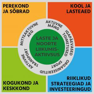 Laste ja noorte liikumisaktiivsuse tase moodustub paljudest eri tegevustest nagu aktiivselt mängimine, aktiivne transport ehk vahemaade läbimine jala, tõukerattaga, jalgrattaga või muul aktiivsel viisil, treeningutel või mujal organiseeritud spordis osalemine, majapidamistööd ja teised igapäevased toimetused, samuti kehaliselt mitteaktiivne aeg.