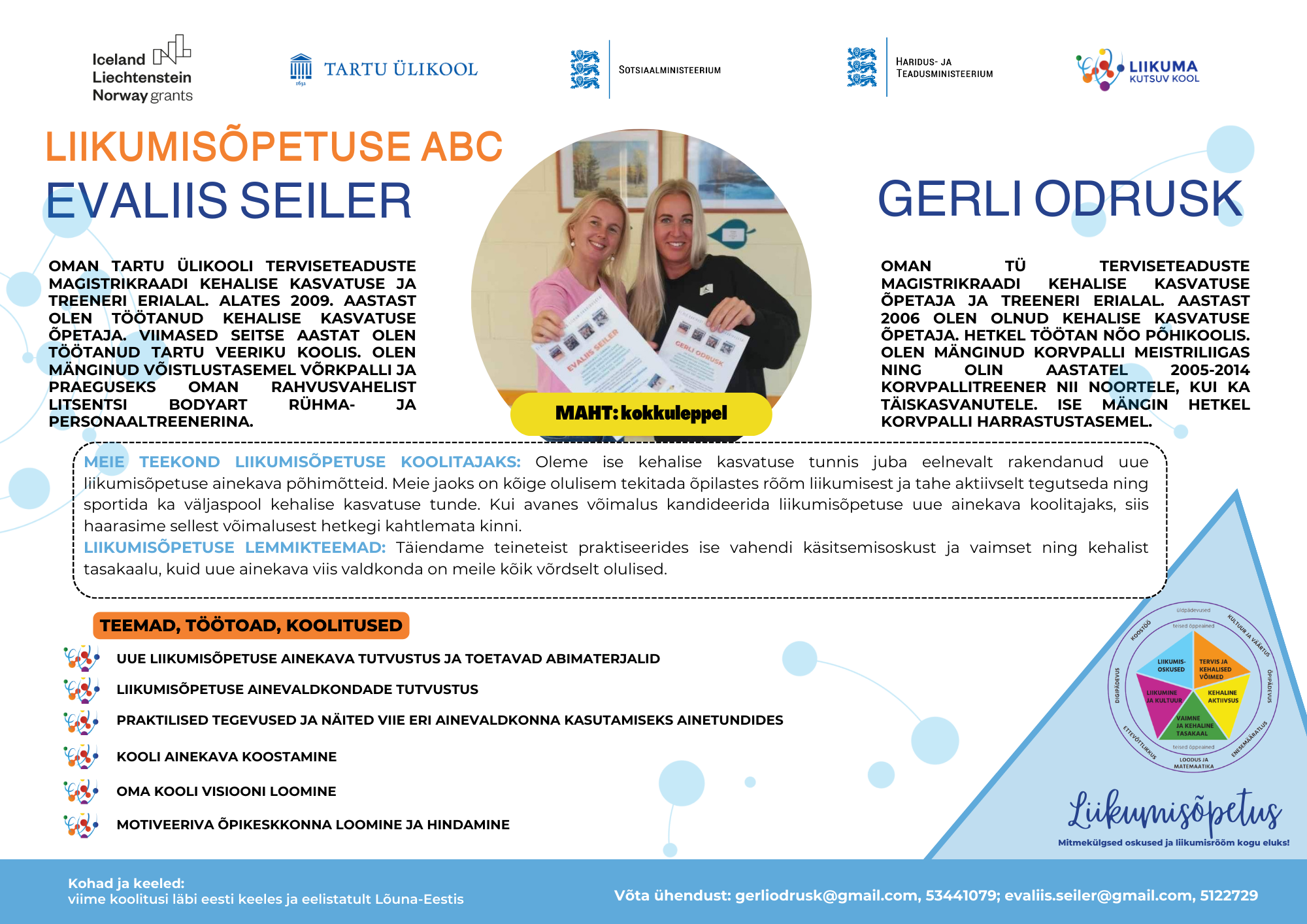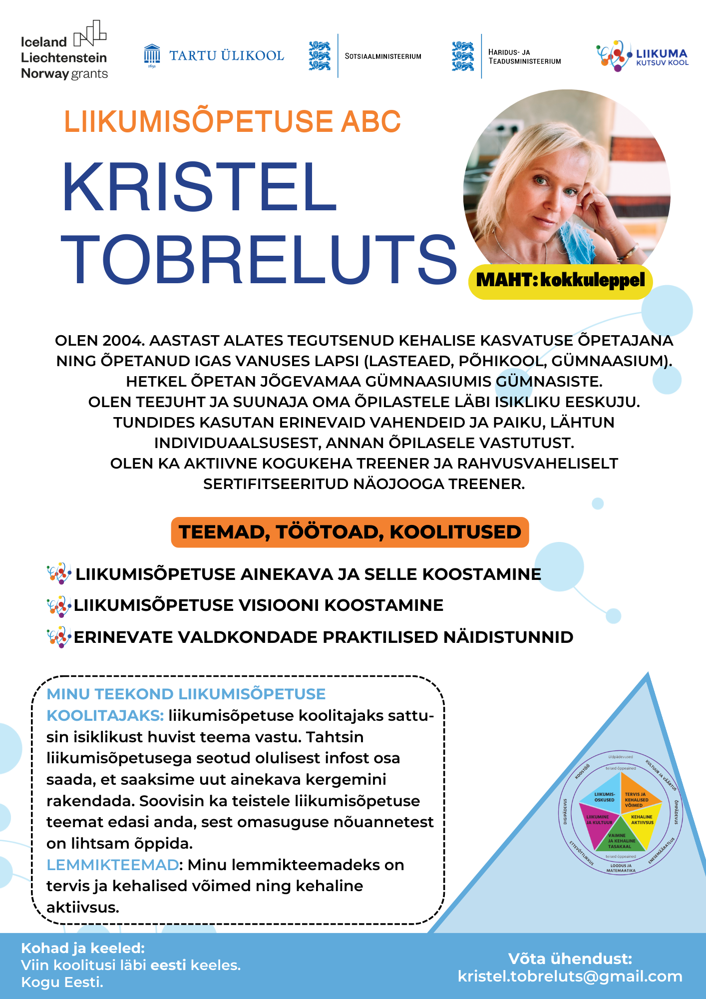 Kutsu kooli, valda või linna liikumisõpetuse koolitaja, kelle koolitus saab pakkuda tuge just nendel teemadel, kus seda parajasti vaja. Koolitused aitavad õpetajatel end ainekavale üleminekul mugavalt ning kindlalt tunda.